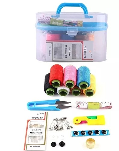 Kit De Costura Con Estuche Hilos Agujas Botones Ganchos