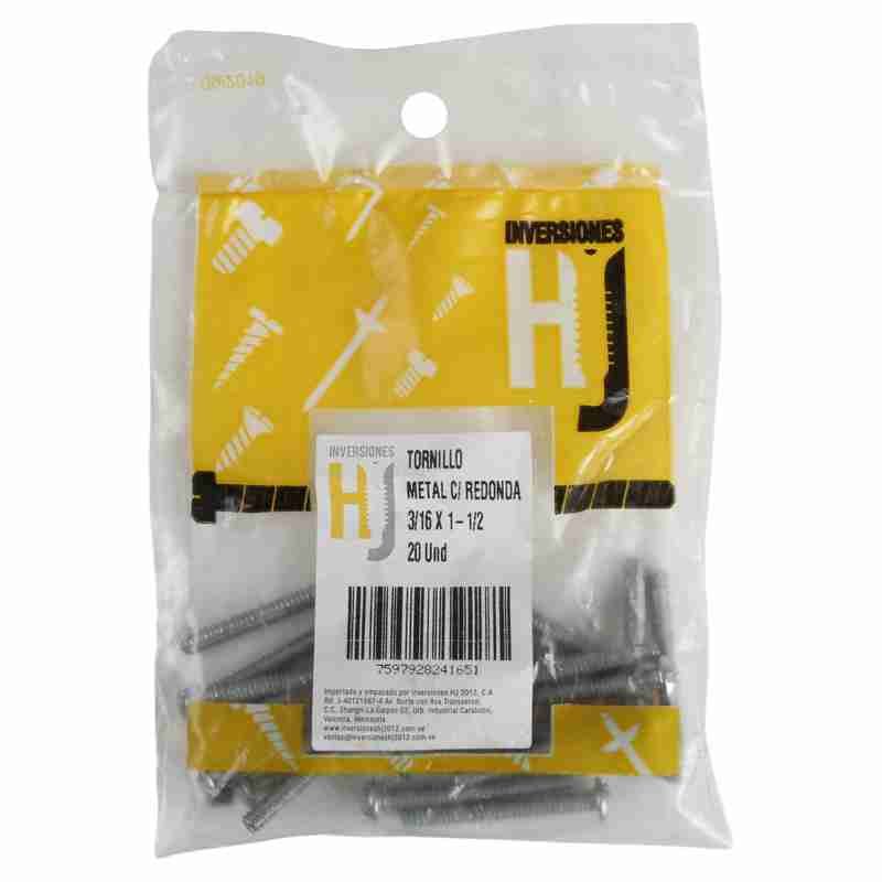 Tornillo metal cabeza redonda 3/16 x 1½» (20 unds)